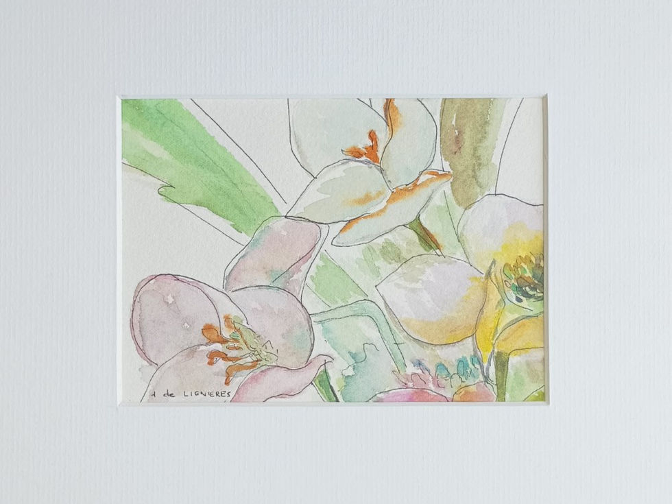 L'aquarelle se prête parfaitement à ce thème. Jacqueline a toujours utilisé ce médium pour retranscrire le velouté des pétales, leur transparence, la fragilité d'un instant. Une cinquantaine d'oeuvres sont ici disponibles.